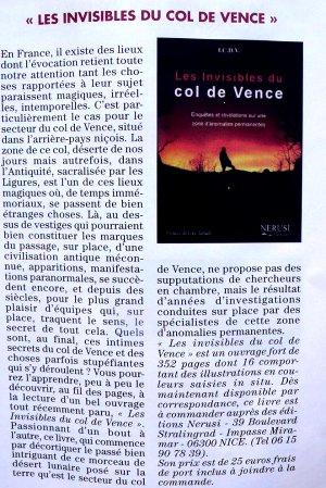 M. Didier Audinot, auteur bien connu pour ses ouvrages sur les lieux mystérieux, les trésors et les fantomes, a parlé de nous dans la dernière parution de sa revue “Trésors et détection” (No 105 janvier/février 2009), revue vendue chez les marchands de magazines ou par correspondance. Merci à lui pour cette publicité sympathique.
